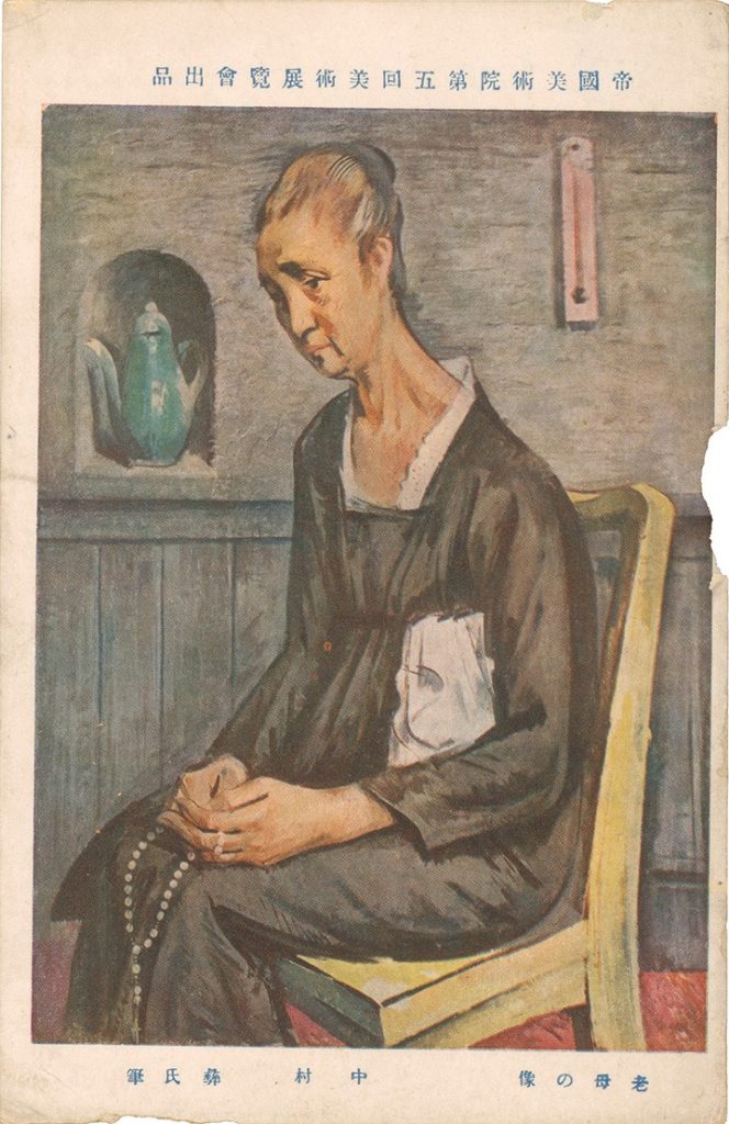 西方視覺藝術的現代化始於印象派對古典美感語言的解構,後期印象派時期則採行更激烈的解構。Paul Cézanne (塞尚)可說是後期印象派藝術家中最能將該解構予以理論化的人,被視為西方美術現代化的奠基人物,名作有《玩牌的人們》(圖3)。陳澄波的這批日本畫家作品明信片收藏中,時時可見Cézanne (塞尚)的影子,中村彝的 《老母親的畫像》(1924第五回帝展,圖4)有著與該名作一樣拉長的人物形象、粗礦的筆觸表現、略顯暗沉的色彩計畫,彷彿是Cézanne (塞尚)工作室出品的樣子。