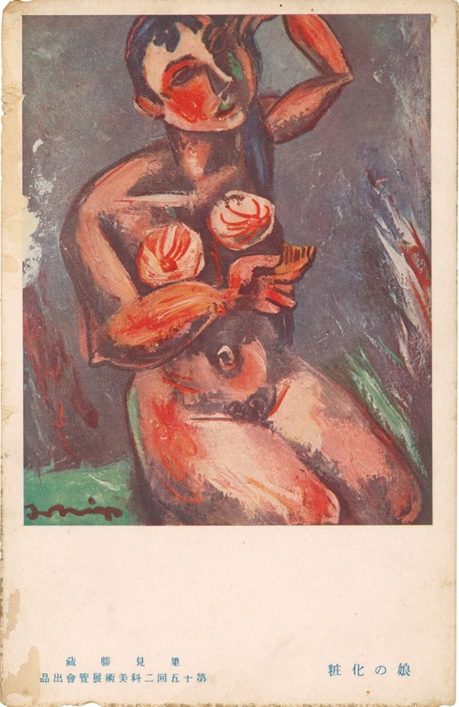 野獸派運用線條的方式可能影響了陳澄波,特別是其裸女畫;里見勝藏的《少女的妝容》(1928第十五回二科美術展覽會,圖21)以高反差且粗礦的筆觸、任意運用的色塊、無視解剖學常識等表現手法,進行了一場野獸派風格的應用。若說其有不及Henri Matisse(馬諦斯)(圖22)的部份,則是後者懂得從一場衝突佈設中,呈現一種視覺和諧感,這是野獸派的藝術熟手才能掌握的。