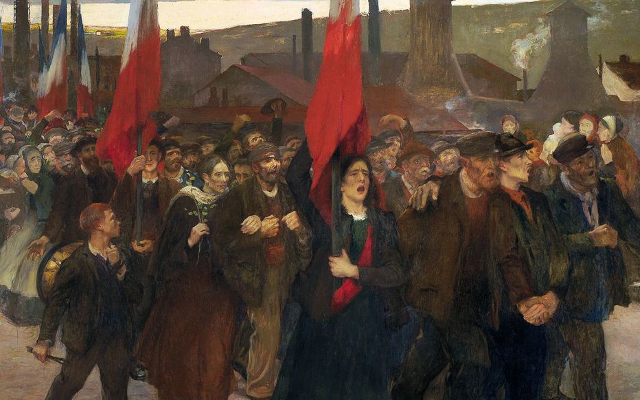 歐洲十九世紀的工業化帶來農村人口大量移往城市、勞工階級形成以及階級意識被喚起,藝術家並沒有錯過這一連串的社會變遷。十九世紀中葉開始的寫實主義先是描繪了勞動場景(圖11)、離家背井工作的移民(圖12),之後是出現罷工景象(圖13),這一創作路線與上述冷漠遁世的表現主義背道而馳,它再現了這段關於工業化與社會主義思潮湧現的歷史。