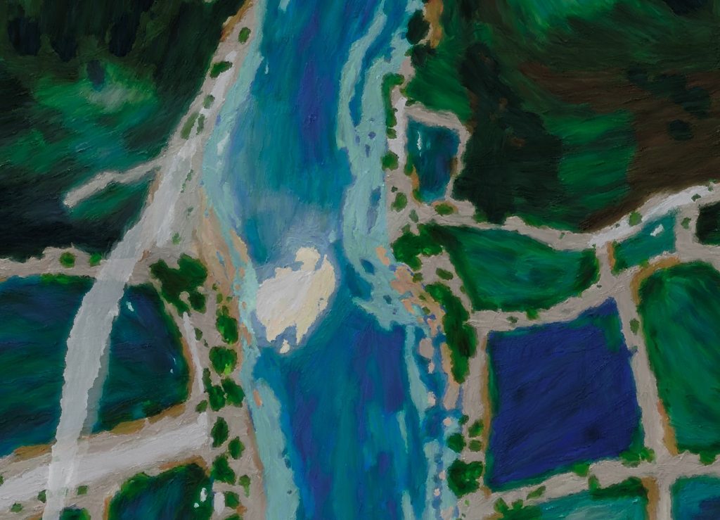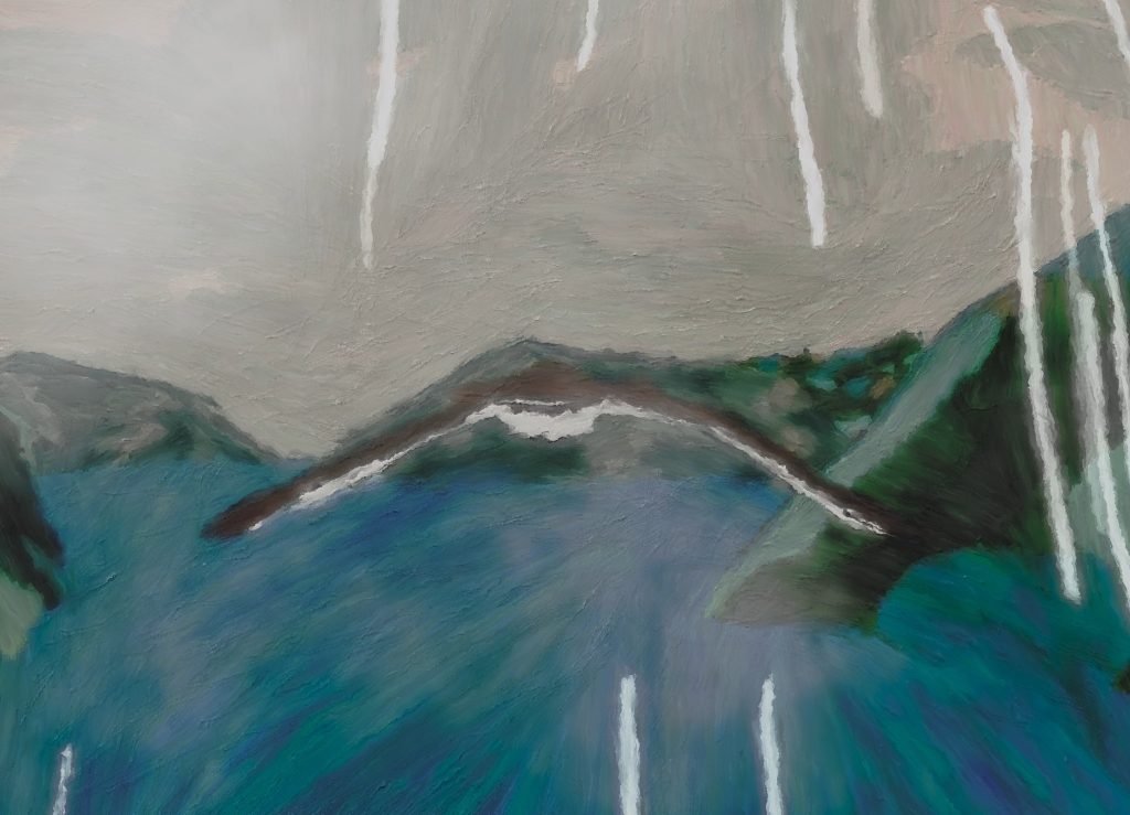 動畫同樣將觀眾「帶離原畫的時空」,在前期策劃時,導演翻找地圖,從阿里山往西南方看過去,曾文溪恰好有著面向西南的出海口,既然沿著曾文溪一路向上便能抵達阿里山,那麼不如讓本篇主角「西南季風」沿著曾文溪逆行而上吧!因為風是無形的,往前衝刺的過程當中,老鷹的加入既能引領視覺焦點,也讓無形的風吹產生了對於生命的意義,我們不會只談論西南季風,而忽略了它帶給大自然生命的意義。接著,西南季風富含水氣的空氣因為遇到山的冷空氣開始凝結,雲層底下下起了雨,隨著老鷹突破雲層,到達了壯闊的阿里山雲海(原畫)。