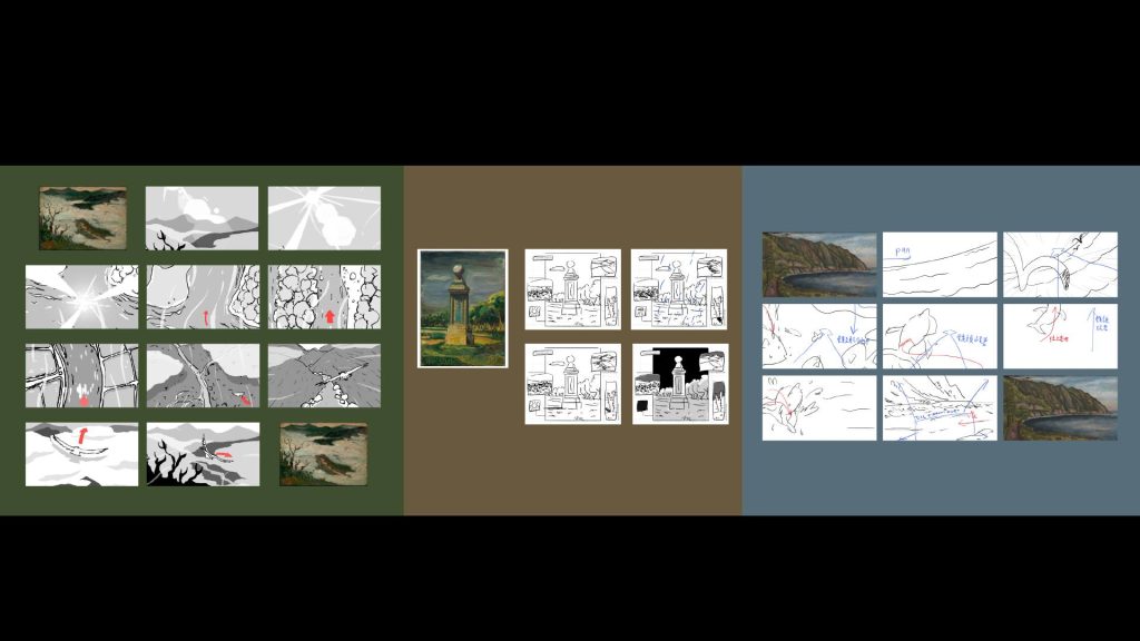 可是,一切的基底是陳澄波的創作初衷,是這系列動畫之根本,動畫裡頭的想法都是延伸自當年陳澄波創作原畫作的初衷,所以在動畫的架構上,「始於原畫,終於原畫」的 Loop 循環這個想法就產生了,恰好這樣的呈現方式,在展覽現場也可以持續順暢地播放,再恰當不過了。
