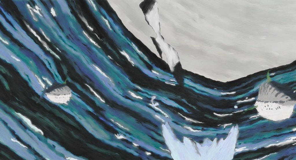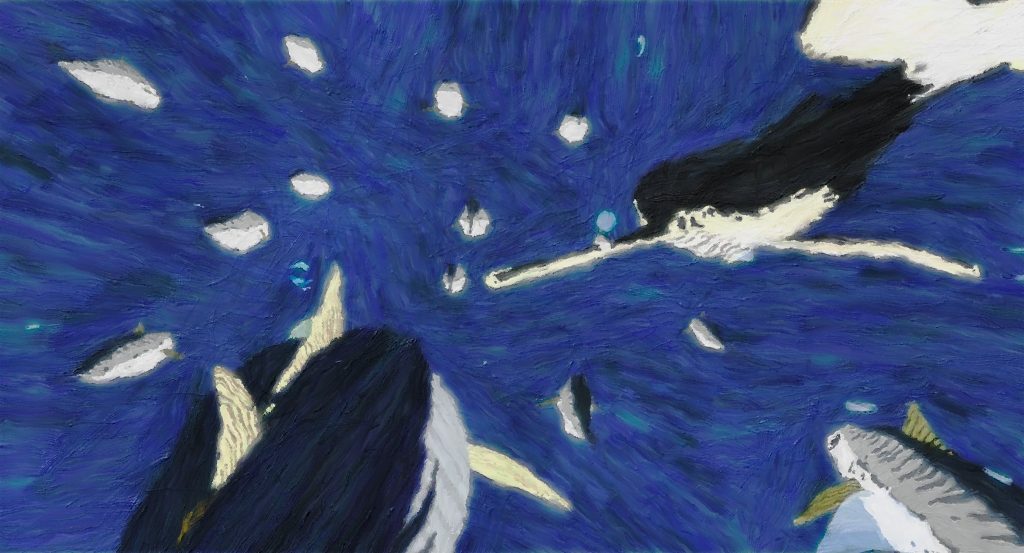 以「始於原畫,終於原畫」的 Loop 架構,動畫將觀眾「帶離原畫的時空」,創造足夠的空間與時間,以魚群的視角,呈現出狂奔的黑潮。