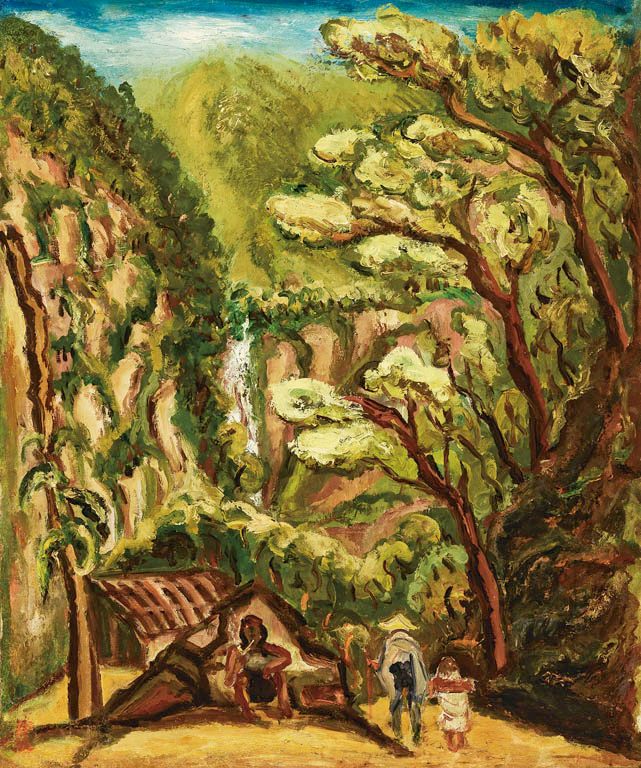 在風景畫中添上幾個小人,是陳澄波經常使用的手法。雖然不怎麼稀奇,但當我們隨著展覽的介紹,得知作用於臺灣的「自然力」之後,那麼這些人物就不只是在引領觀者優遊畫境,更是與我們一同感受自然為島嶼留下的痕跡。