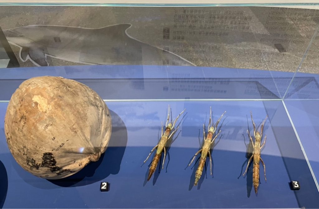 這次特別展出的臺博館館藏:「水椰」與「穗花棋盤腳」,正是台灣沿海典型的海漂植物,牠們不僅會攜帶津田氏大頭竹節蟲、象鼻蟲等的卵,還能順著黑潮,將這些無法飛行的昆蟲帶往遠方。