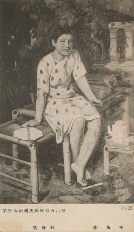 李梅樹另一作品〈黃昏時〉(圖4),即使畫作已難尋,參考相片本身就是件相當成功的作品,(同一)模特兒(劉曾妹女士)再次展現其大方魅力,自在到瀟灑萬千,那個笑容並不像是對著攝影者一人而笑,而是對著相片未來的千萬觀眾(圖5);目前李梅樹紀念館的【臺雅貴公子—李梅樹與他筆下的從容現代性】特展還有更多李梅樹鏡頭下劉曾妹的一些身影(圖6)。